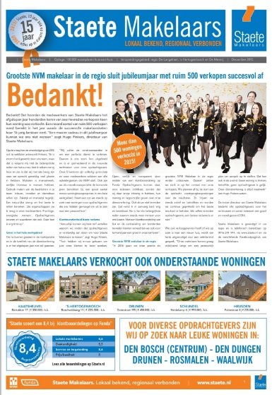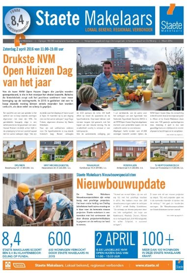 Staete Makelaars geeft vier keer per jaar een huis-aan-huis krant uit. Hierin staat het laatste nieuws over Staete, nieuwe projecten en de woningen die zij te koop hebben staan.